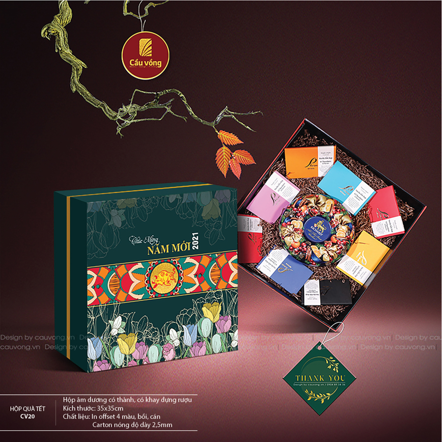 Những mẫu hộp quà Tết của In Cầu Vồng được thiết kế tinh tế, sản phẩm xuất xứ nguồn gốc rõ ràng, giá cả hợp lý là sự lựa chọn hàng đầu của các đơn vị quà tặng, các doanh nghiệp. Những món quà biếu tết không những mang lại lợi ích hữu dụng mà còn chứa chan tình cảm của người tặng.